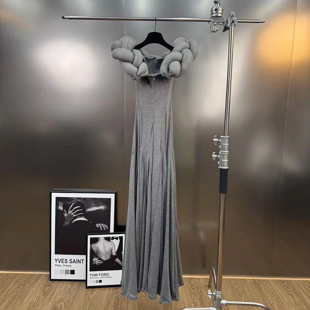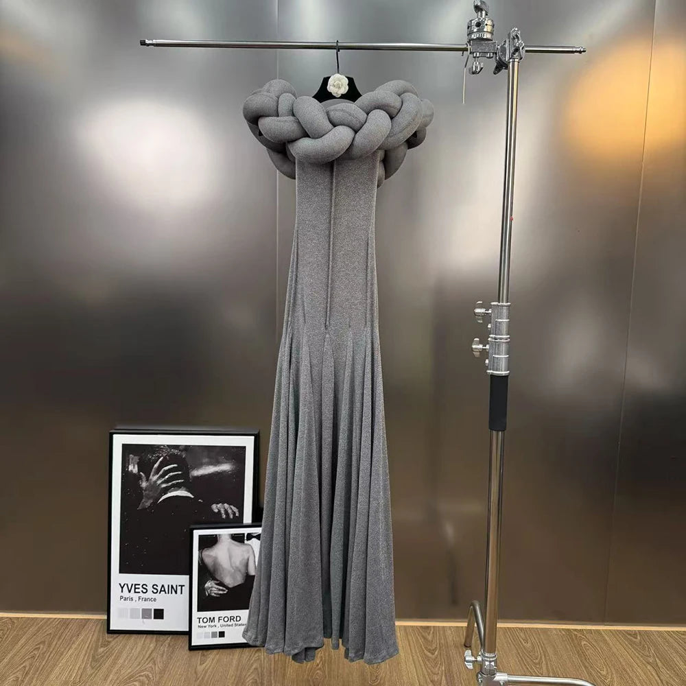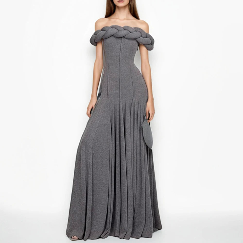 Elegantes Damen-Kleid mit Rundhalsausschnitt und langen Ärmeln – Patchwork-Design mit Perlen für einen stilvollen Auftritt.