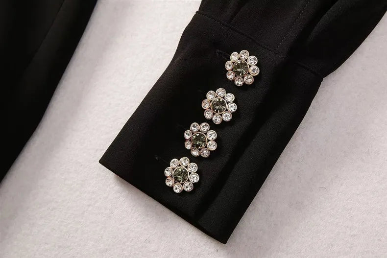 Elegante Damenjacke mit Applikationen und Perlen, locker geschnitten, mit Reverskragen und langen Ärmeln im Patchwork-Design.