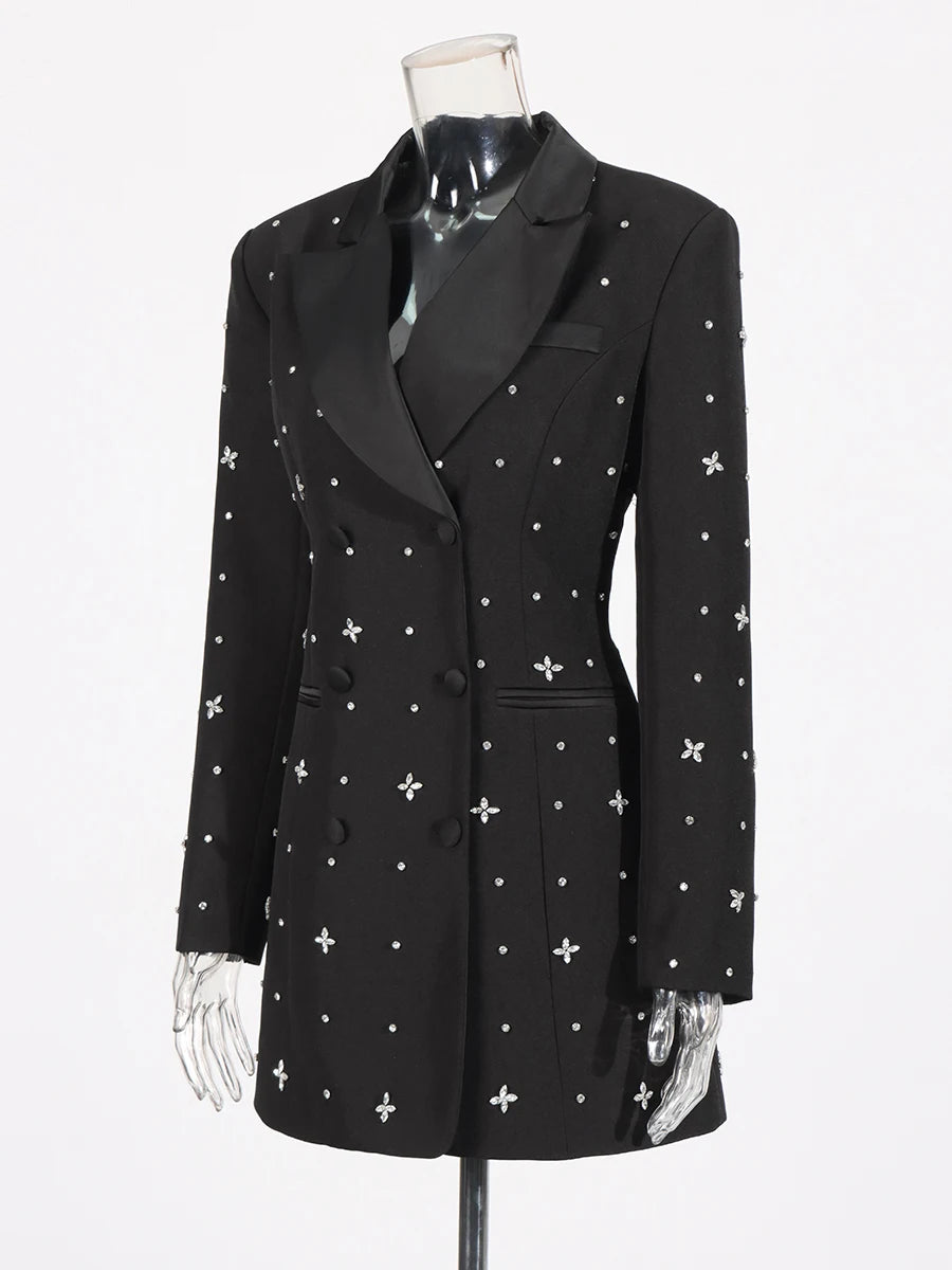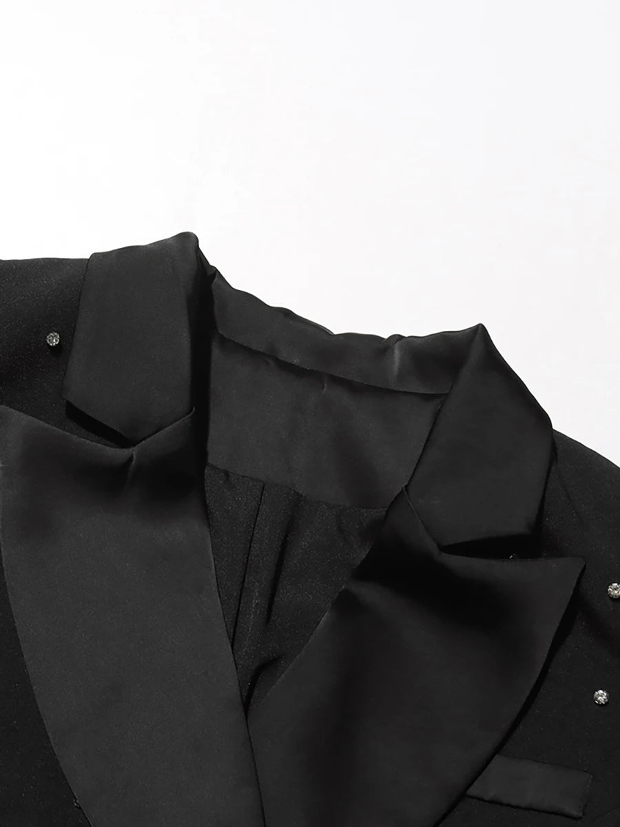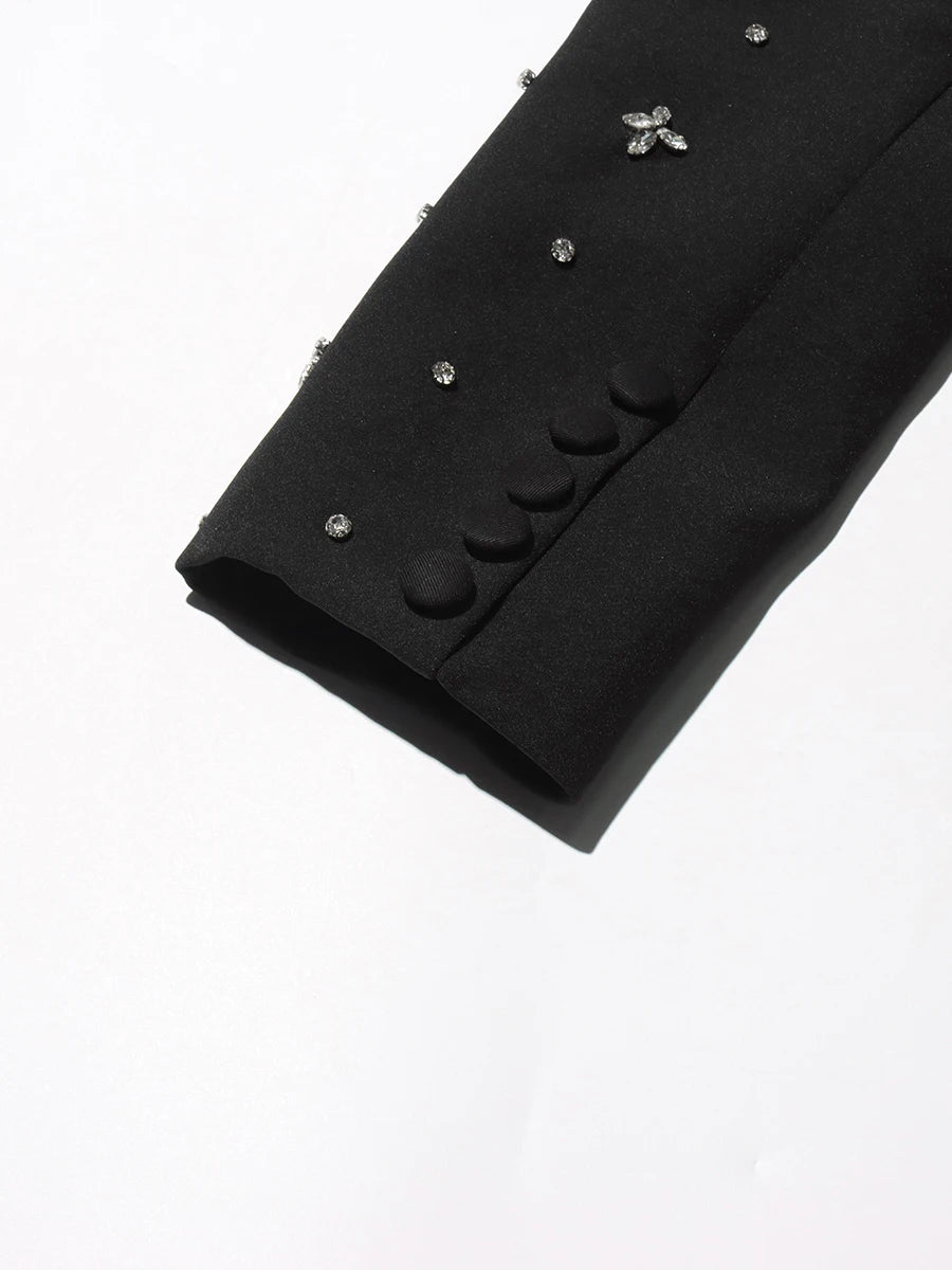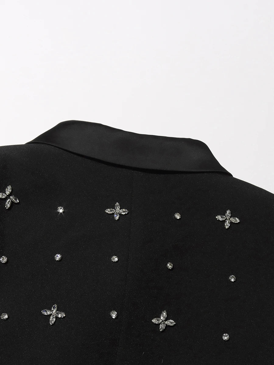 Zweiteiliges Damen-Set mit Rundhals, kurzen Ärmeln und Applikationen – Oberteil und hoch taillierter Rock.