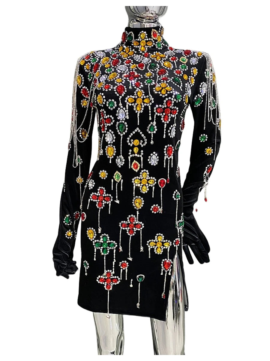 Damen-Blazer mit Farbblock-Design und Kettendetail – Notch-Kragen und lange Ärmel im Patchwork-Stil