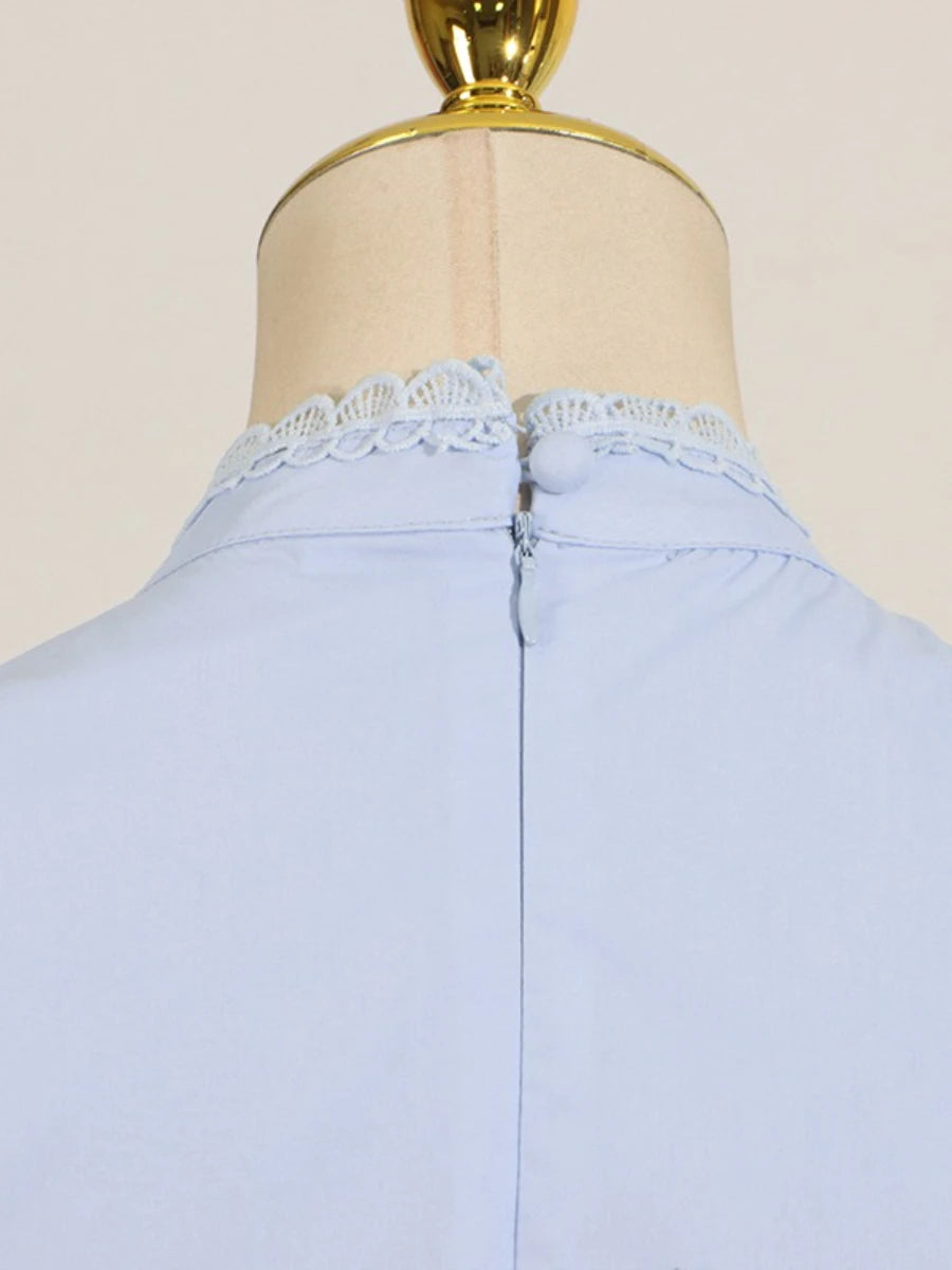 Elegantes Damenkleid mit U-Boot-Ausschnitt und halblangen Ärmeln – figurbetontes Design mit Perlenverzierung und Patchwork-Details