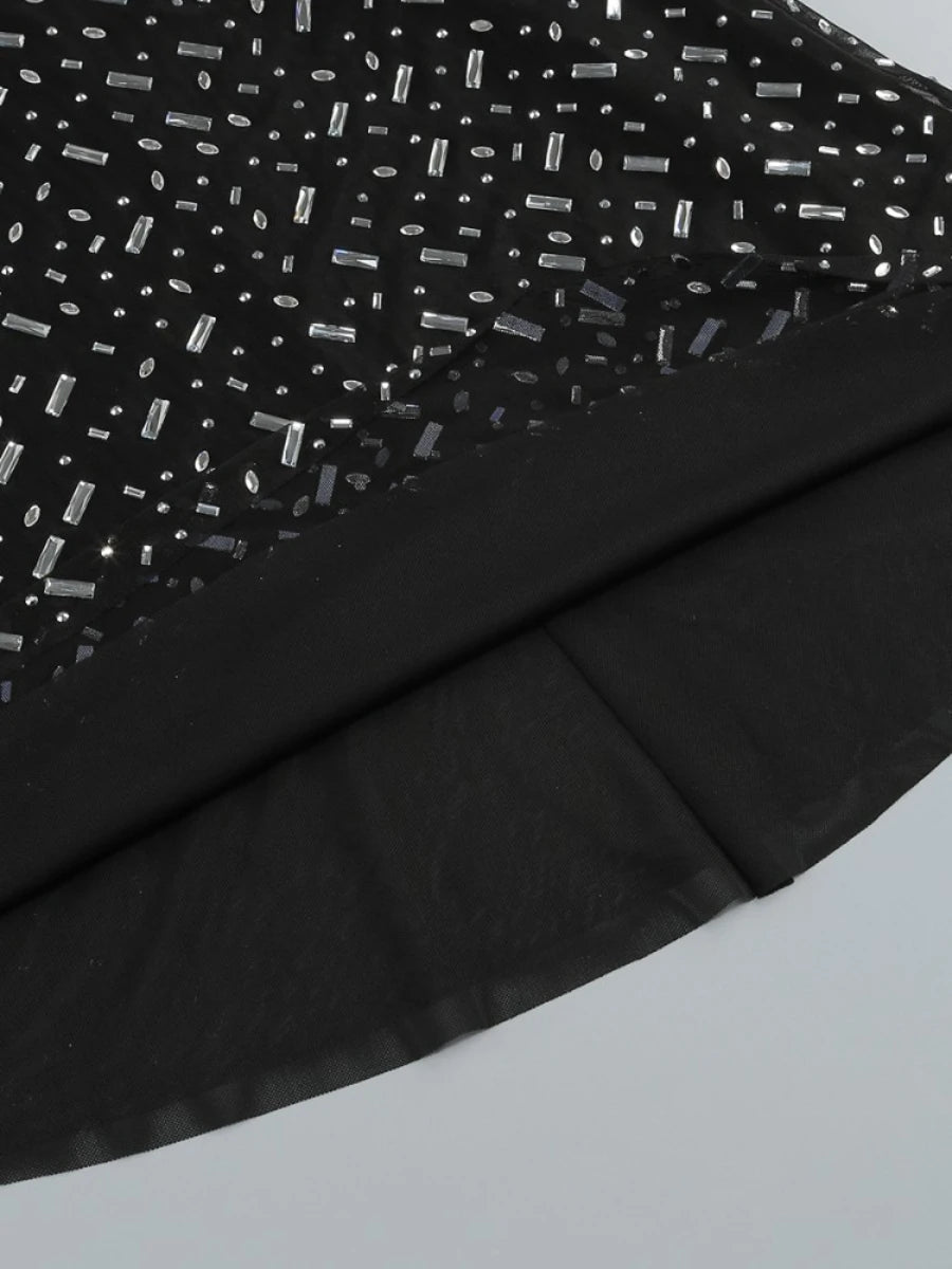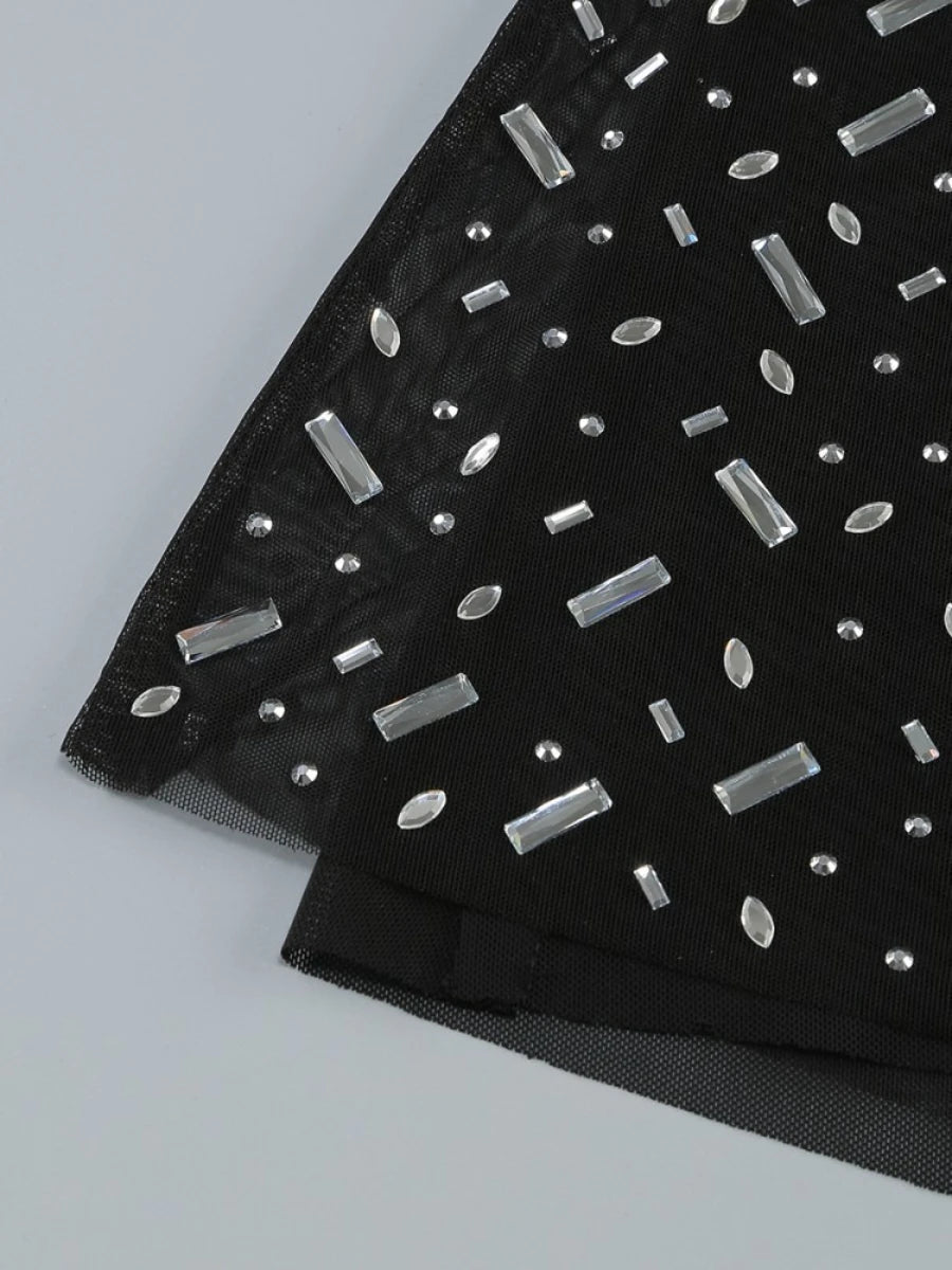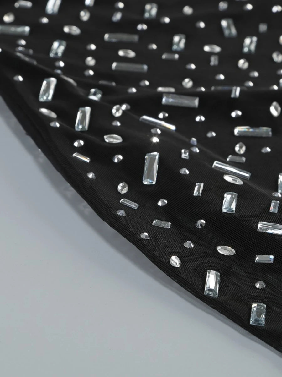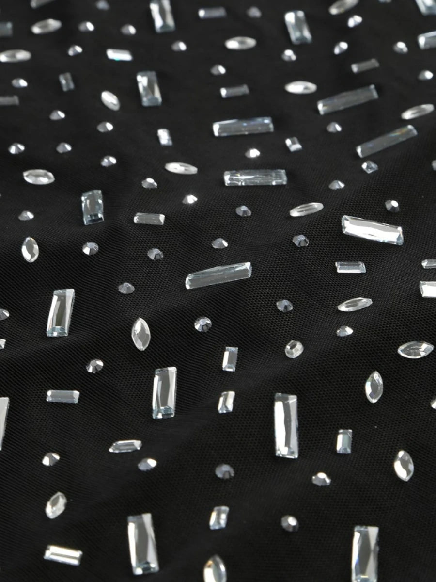 Luxuriöse Damenjacke mit Perlenbesatz und Patchwork-Design, Reverskragen und langen Ärmeln, einreihig