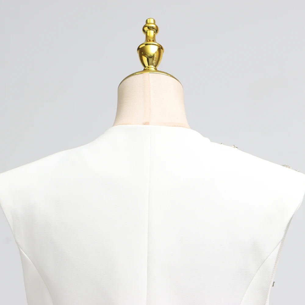 Elegantes Damenkleid mit Rundhalsausschnitt, kurzen Ärmeln und Pailletten-Patchwork-Design – ideal für besondere Anlässe.