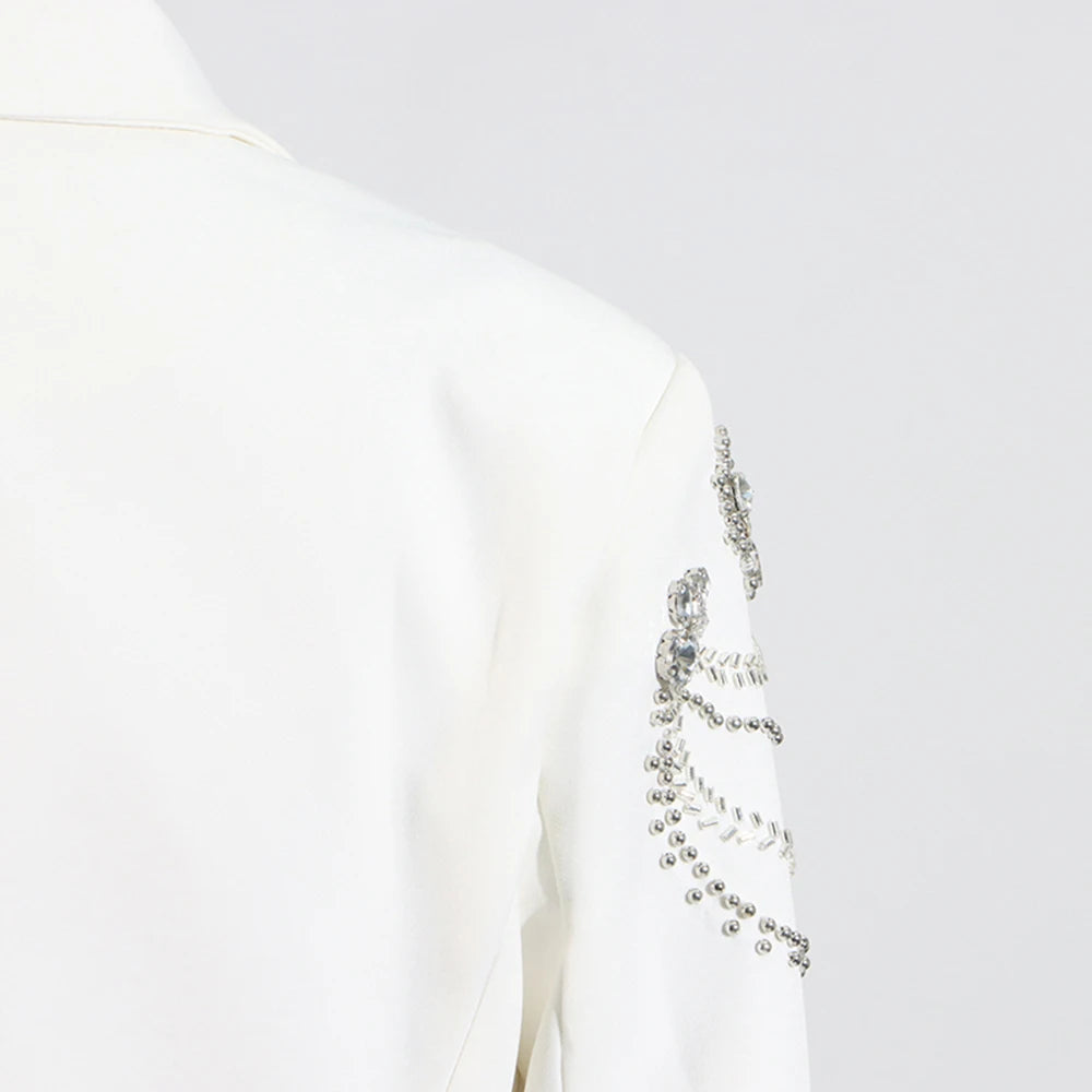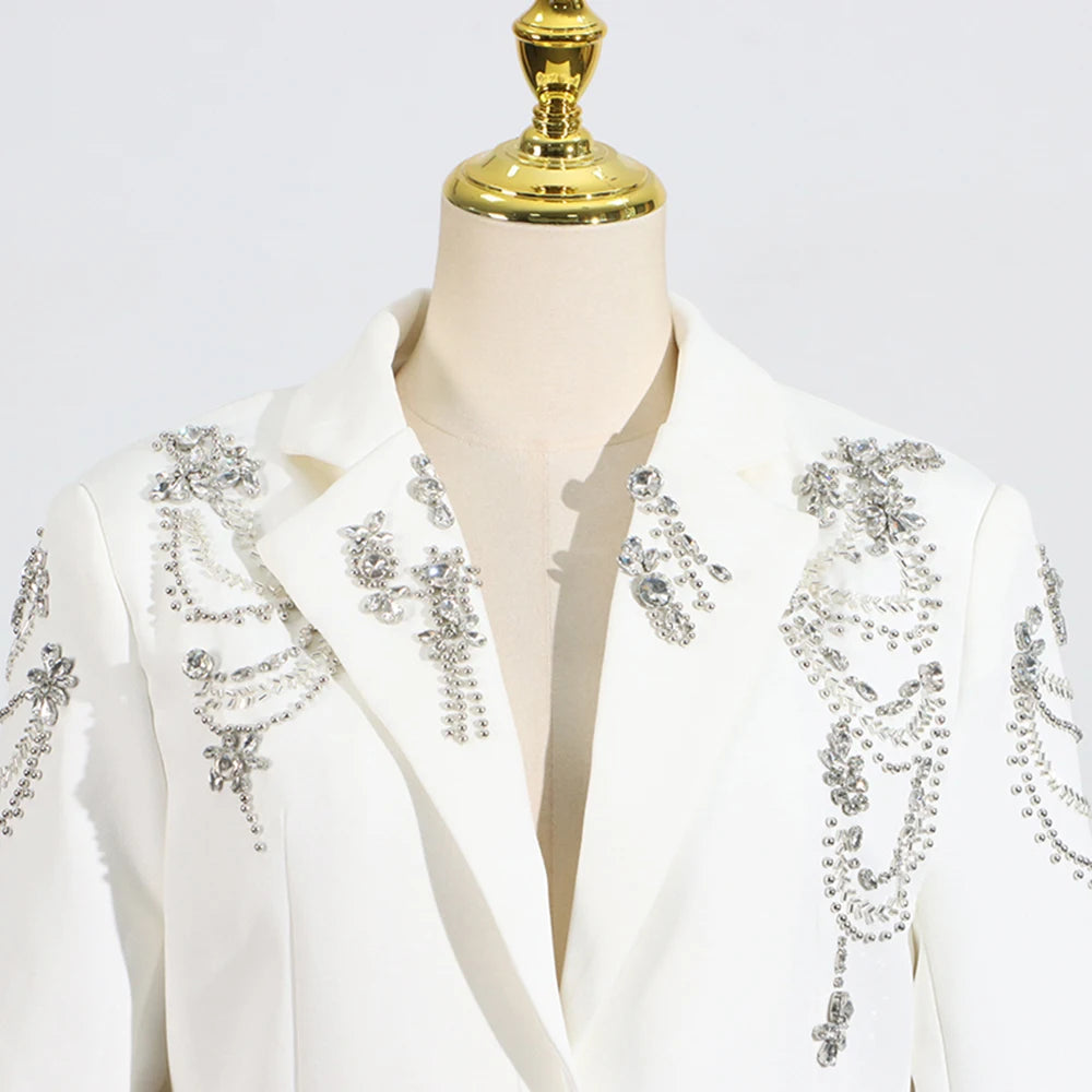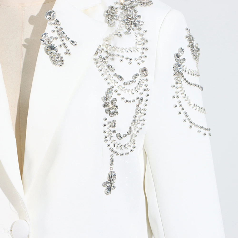 Elegantes Damen-Minikleid mit Perlenbesatz, Reverskragen und langen Ärmeln – modisches Patchwork-Design mit Knopfleiste