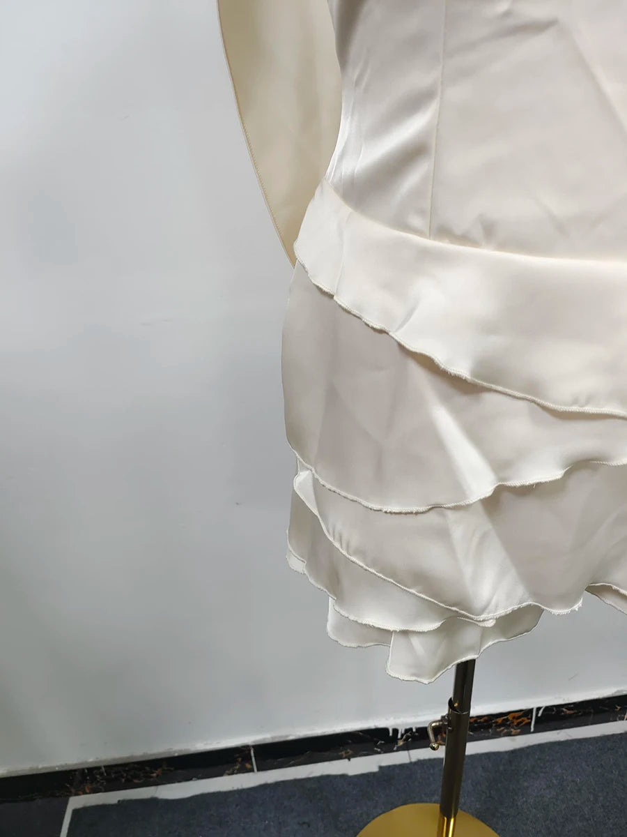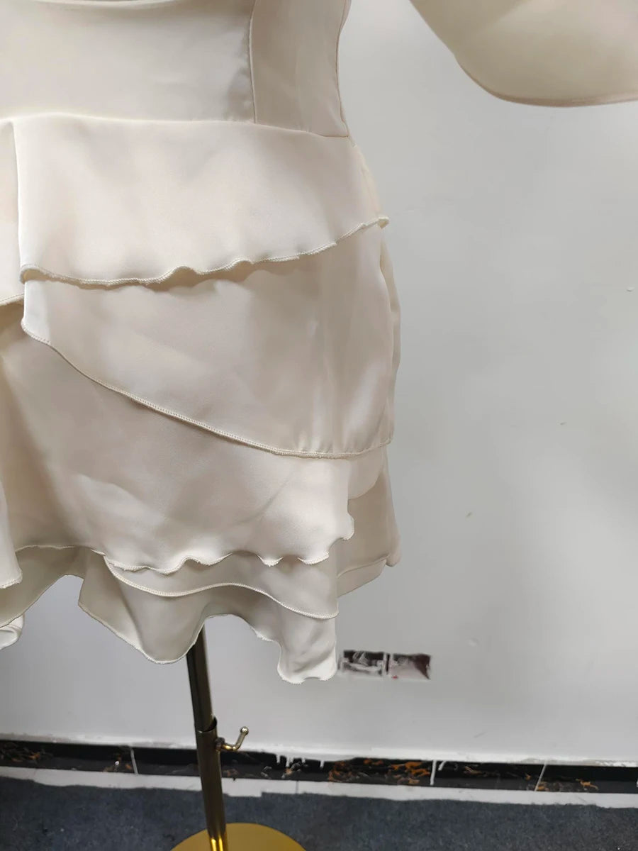 Elegantes Mini-Kleid für Damen mit halbem Stehkragen, langen Ärmeln und 3D-Blumen-Patchwork – figurbetontes Design.