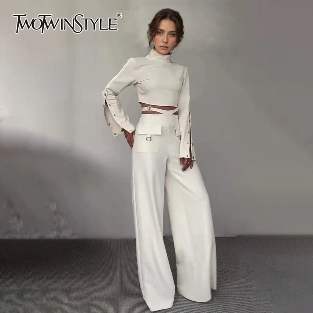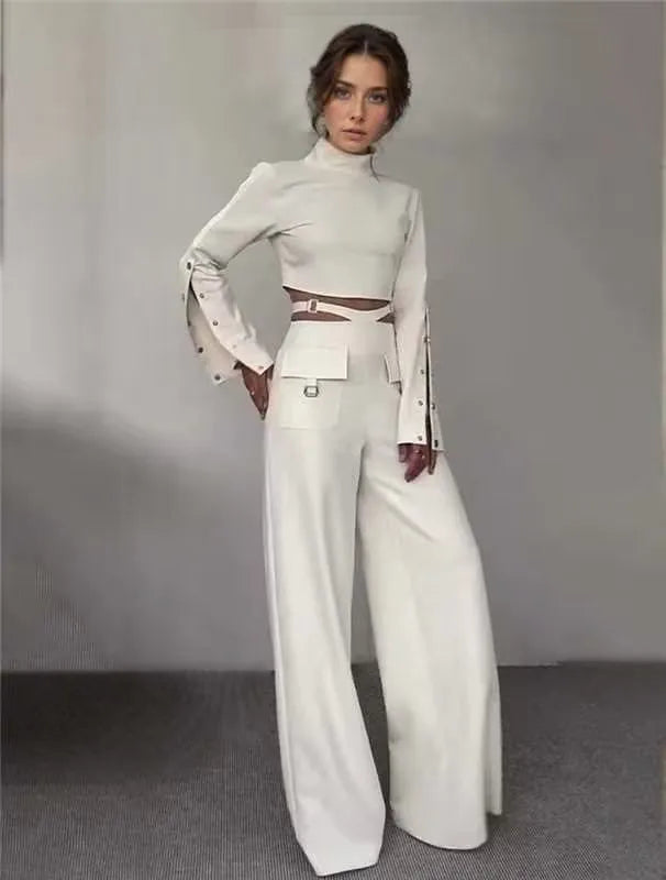 Elegantes zweiteiliges Damen-Set mit V-Ausschnitt, ärmellosem Oberteil und hoch tailliertem Rock mit 3D-Blumendetails und Schlitz.