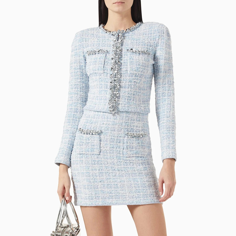 Zweiteiliges Damen-Set mit Rundhals, Langarm-Oberteil und Faltenrock – lässig und stilvoll