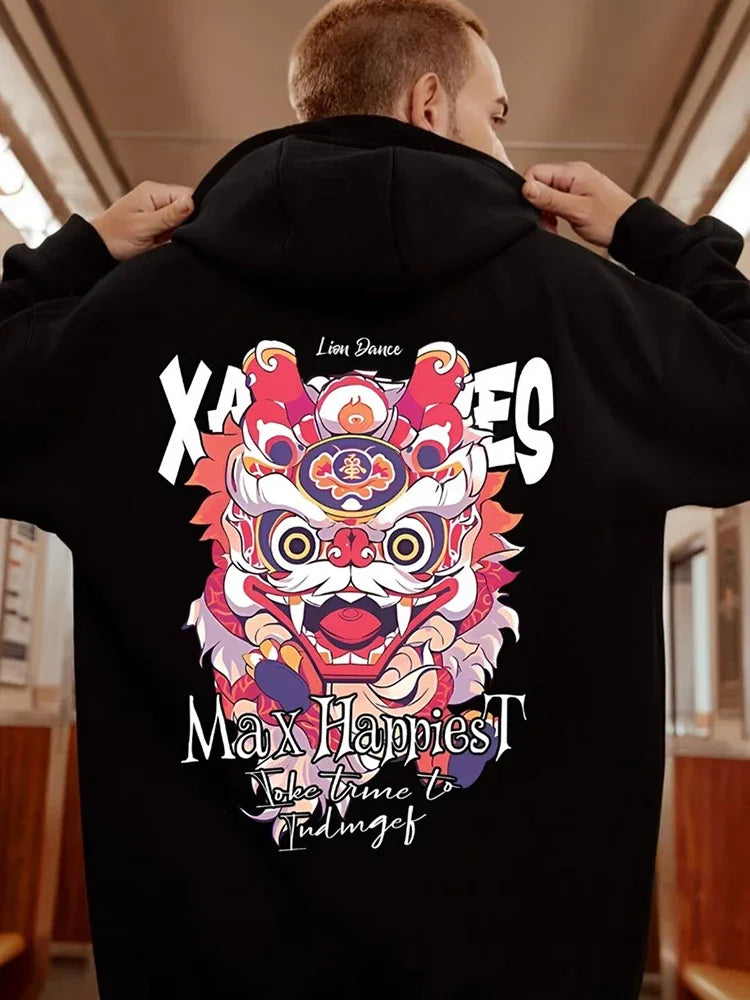 Winter Herren Lion Dance Grafik Pullover Hoodies Y2K Streetwear Fleece Mit Kapuze Sweatshirt Hip Hop Mode Übergroße Hoody Kleidung